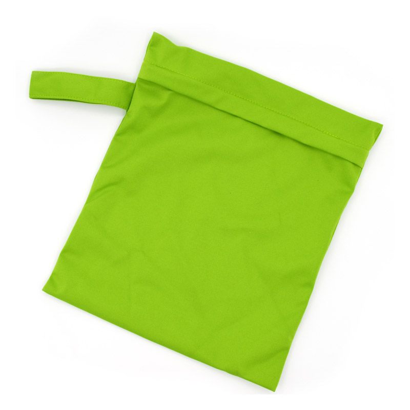 The wet bag features a convenient snap handle, easily hung from door knobs and attach to a stroller and hooks. two pockets closed by zippers to hold more things.